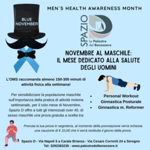 Novembre è il mese dedicato alla salute maschile. L’OMS consiglia, per mantenersi in salute, almeno 150/300 minuti di attività motoria…
