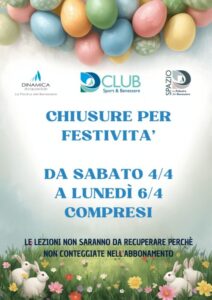 Per le vacanze Pasquali lo Spazio D sarà chiuso SOLO Sabato 4 e Lunedì 6 Aprile compresi. Le lezioni non…